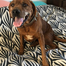 Scooby is our inspiration! He was kept on a chain outdoors for 12 long, hard years. He nearly starved to death, suffered appalling mange, and was frequently beaten by drunken neighbours with a stick. He spent several weeks at the sanctuary where he was helped by Dr Dave and friends, and has now been happily rehomed… where he insists on half an hour of belly rubs every morning from his new family 😊